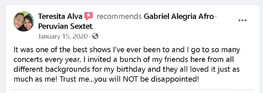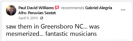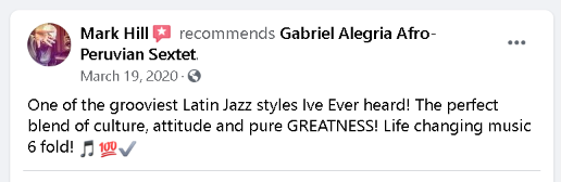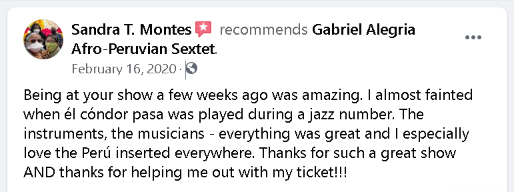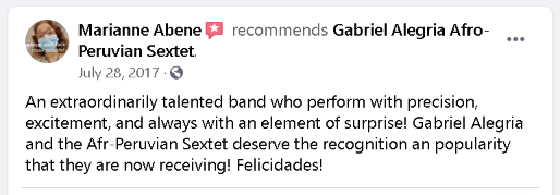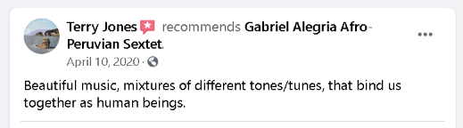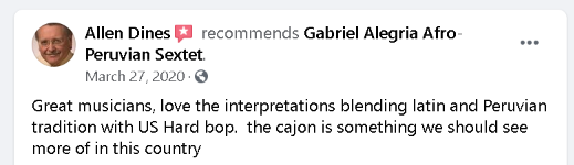Gabriel Alegria's Life's Work has been to introduce Afro-Peruvian Jazz Music to the World.